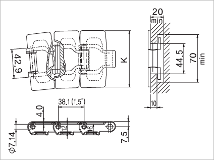 | PLATE | PIN | MM | INCH | N | R | R | kg/M | ||