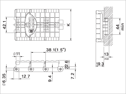 | PLATE | PIN | MM | INCH | N | MM | kg/M | ||