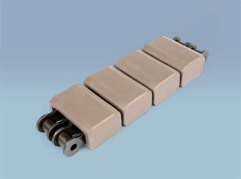 이 체인 방식은 복합체인의 기본 방식으로서 대중적으로 쓰이는 범용체인에 수지 커버를 씌움으로써 제품의 이송에