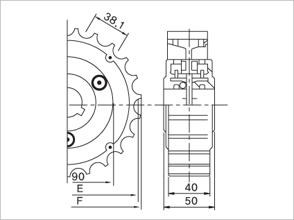 | TEETH | BORE | CODE.NO | PITCH DIAMETER(E) |